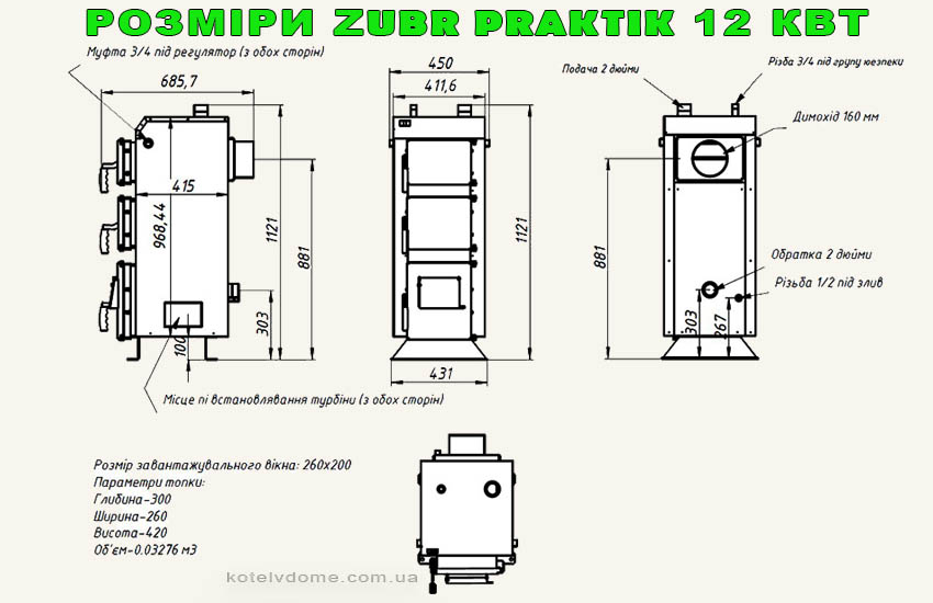 Котел Зубр Практик 12 квт використовується для обігріву будинків та побутових приміщень площею 120 квадратів. Це сучасна модель опалювального обладнання з ефективною системою подачі повітря, пластинчастим теплообмінником з горизонтальним розташуванням та збільшеною камерою для палива. Пристрій відрізняється економним споживанням паливної сировини, чудовими характеристиками роботи та великою тривалістю горіння. Конструкція має гарний дизайн, облаштована: енергоощадним кожухом, чавунними колосниками, круглим димоходом з шибером. Виготовляється по інноваційним технологіям зі спеціальної котлової сталі.