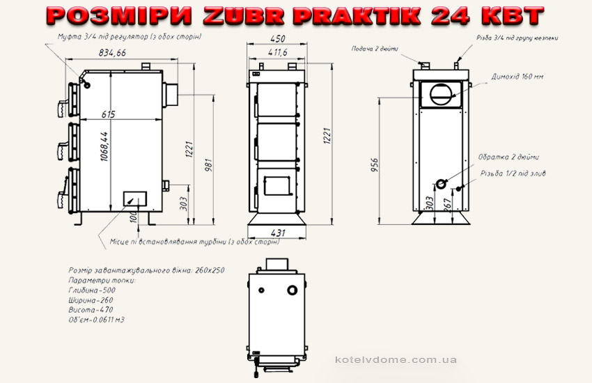 Твердопаливний котел Zubr Praktik 24 ⭐ Сталь 5 мм
